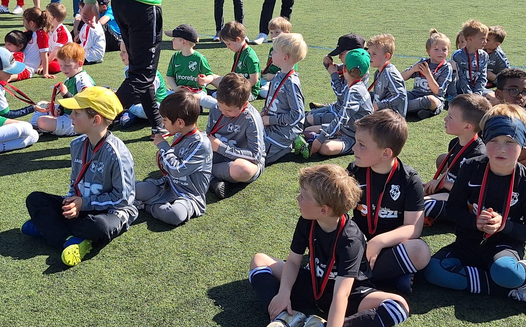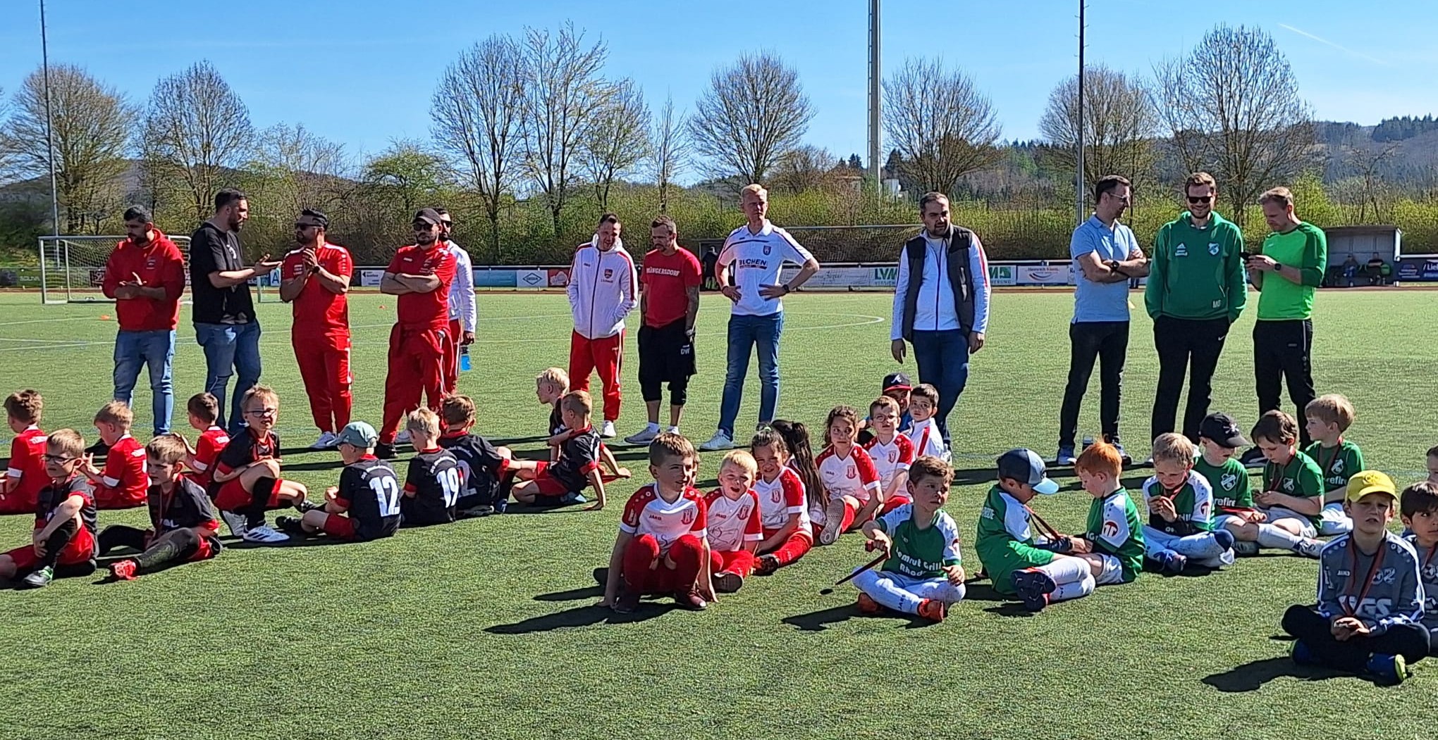 Bereits um 9.15 Uhr starteten die Mini-Kicker mit einem Spieletreff, in dem es um den Spaß am Fußball ging. Großartige und faire Spiele der kleinsten Kicker ließen schon am frühen Morgen erste Begeisterungsrufe von den Rängen ertönen. Nach der Verabschiedung der Mini-Kicker startete der F-Jugend Spieletreff mit 10 Mannschaften in 2 Gruppen. Sehr guter Fußball wurde auch hier gezeigt mit vielen Toren im Fair Play. Auch hier erhielt am Ende des Spieletreffs jeder Jugendspieler eine Medaille.