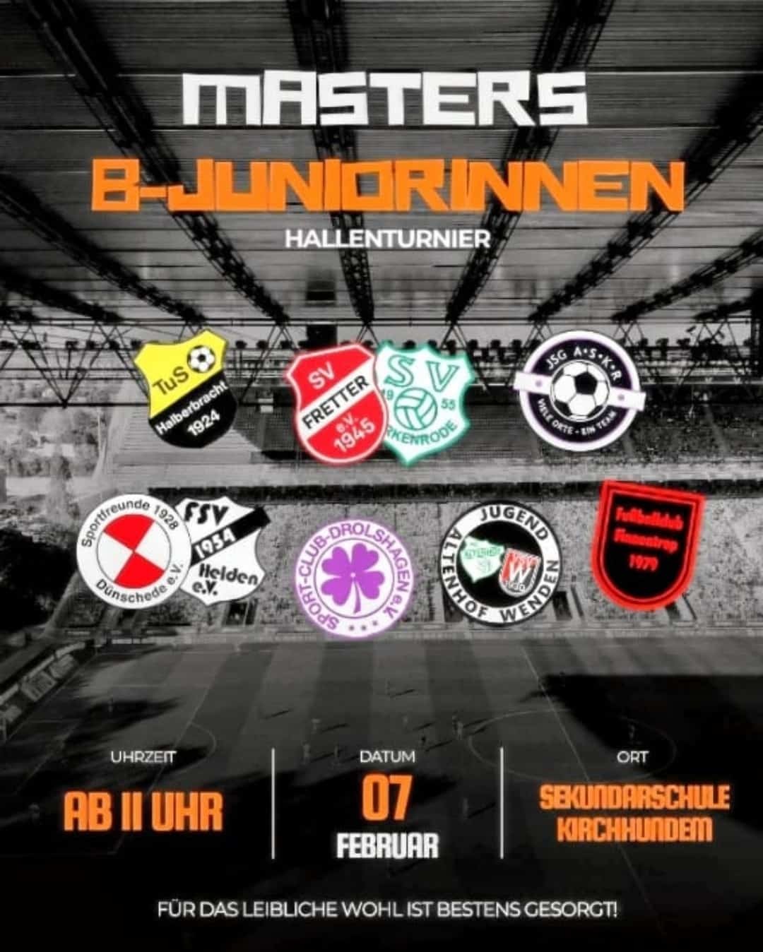 Die B-Juniorinnen der JSG Dünschede/Helden nehmen am Samstag, den 07.02.2026, am Kreis-Hallenmasters des FLVW Kreis Olpe teil. Das Turnier findet in der Gemeinschaftshauptschule Kirchhundem (An der Hauptschule) statt.