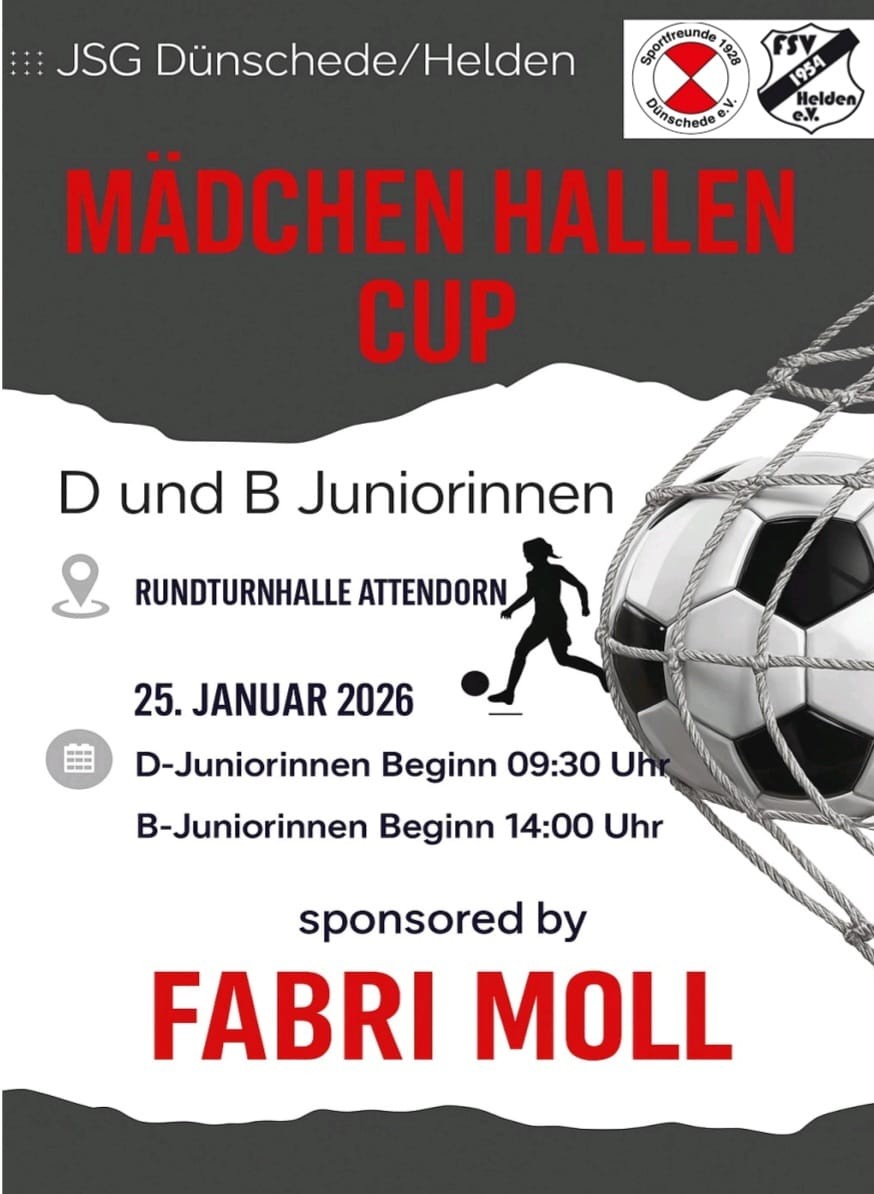 Am Sonntag, den 25. Januar 2026, lädt die JSG Dünschede/Helden herzlich zum 2. Mädchen Hallen-Cup 2026 in die Rundturnhalle Attendorn ein. Nach der erfolgreichen Premiere im vergangenen Jahr steht an diesem besonderen Tag der Mädchenfußball im Mittelpunkt – mit all seiner Leidenschaft, seinem Teamgeist und sportlicher Qualität.
